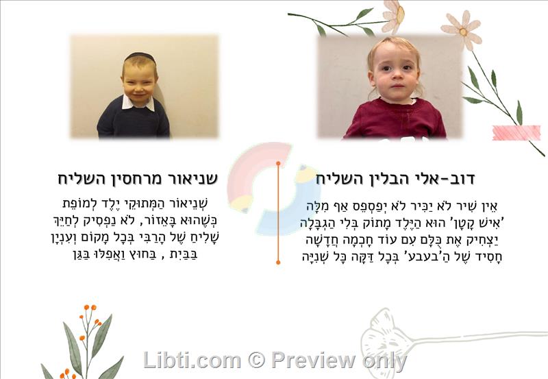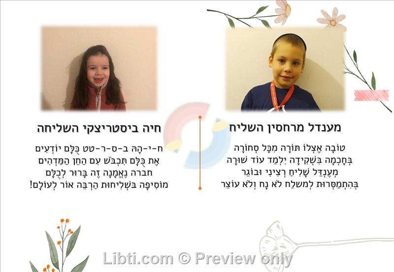 מזכרת אישית לכל ילד מהתוועדות דידן נצח - ספר השלוחים כאשר על כל ילד יש עמוד בספר שמתאר את אישיותו בכמה שורות.